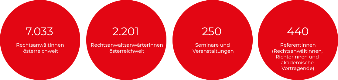 Als Anwaltsakademie begleiten wir Rechtsanwälte und Anwärter auf ihrem Karriereweg und sind ein starker Partner für Kanzleien. Mit über 280 Seminaren jährlich in allen Rechtsgebieten sind wir die zentrale Anlaufstelle für Aus- und Fortbildung – ein Sponsoring bei der AWAK bietet Ihnen Sichtbarkeit bei einem exklusiven Fachpublikum in ganz Österreich.